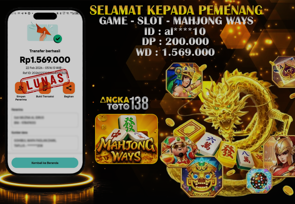 Baru aja terjadi kejadian luar biasa di ANGKATOTO138. Member al****10 hanya deposit 200.000 di game MAHJONG WAYS , berhasil bawa pulang Rp 1.569.000 ๐. Proses WD cepat dan mulus tanpa hambatan. #ANGKATOTO138