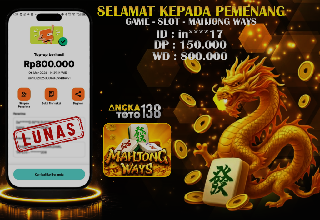 Baru aja terjadi kejadian luar biasa di ANGKATOTO138. Member in****17 hanya deposit 150.000 di game MAHJONG WAYS , berhasil bawa pulang Rp 800.000 ๐Ÿš€. Proses WD cepat dan mulus tanpa hambatan. #ANGKATOTO138
