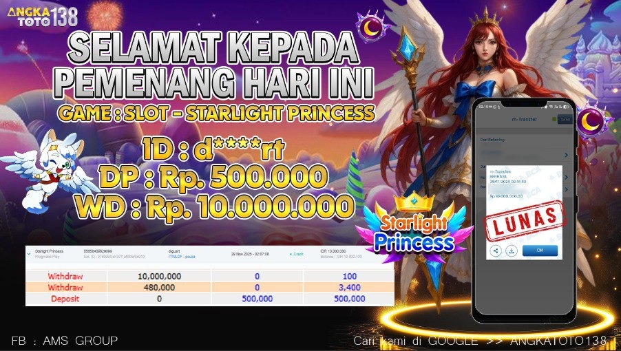Baru aja terjadi kejadian luar biasa di ANGKATOTO138. Member d****rt hanya deposit 500.000 di game SLOT STARLIGHT PRINCESS , berhasil bawa pulang Rp 10.000.000 ๐Ÿš€. Proses WD cepat dan mulus tanpa hambatan. #ANGKATOTO138