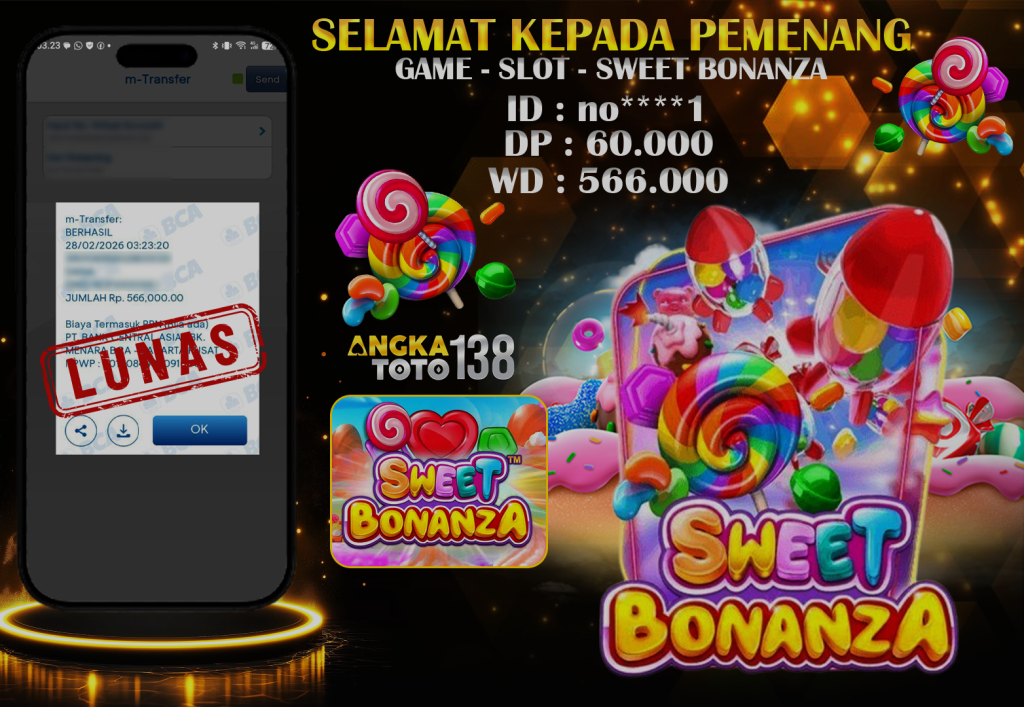 Baru aja terjadi kejadian luar biasa di ANGKATOTO138. Member no****1 hanya deposit 60.000 di game SWEET BONANZA , berhasil bawa pulang Rp 566.000 ๐. Proses WD cepat dan mulus tanpa hambatan. #ANGKATOTO138
