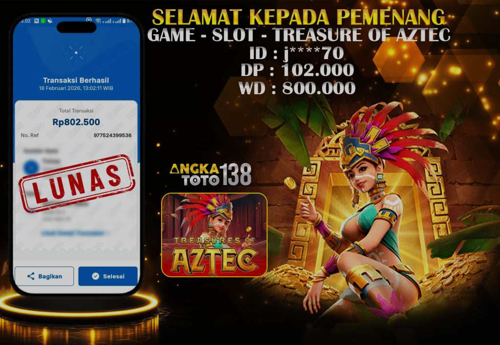 Baru aja terjadi kejadian luar biasa di ANGKATOTO138. Member j****70 hanya deposit 102.000 di game TREASURE OF AZTEC , berhasil bawa pulang Rp 800.000 ๐. Proses WD cepat dan mulus tanpa hambatan. #ANGKATOTO138