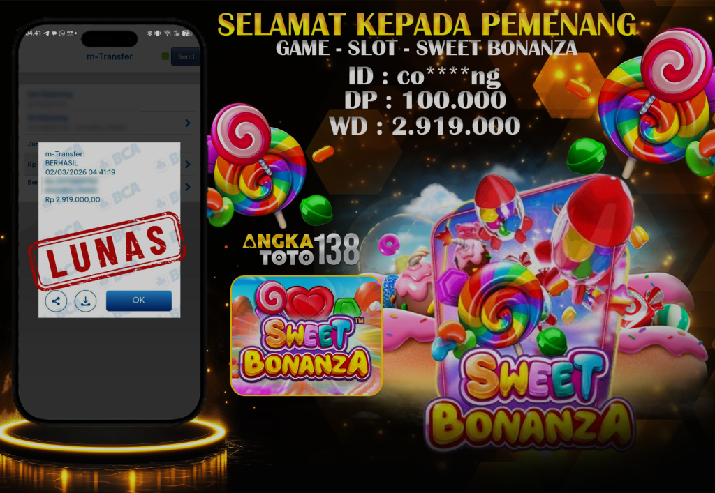 Baru aja terjadi kejadian luar biasa di ANGKATOTO138. Member co****ng hanya deposit 100.000 di game SWEET BONANZA , berhasil bawa pulang Rp 2.919.000 ๐. Proses WD cepat dan mulus tanpa hambatan. #ANGKATOTO138